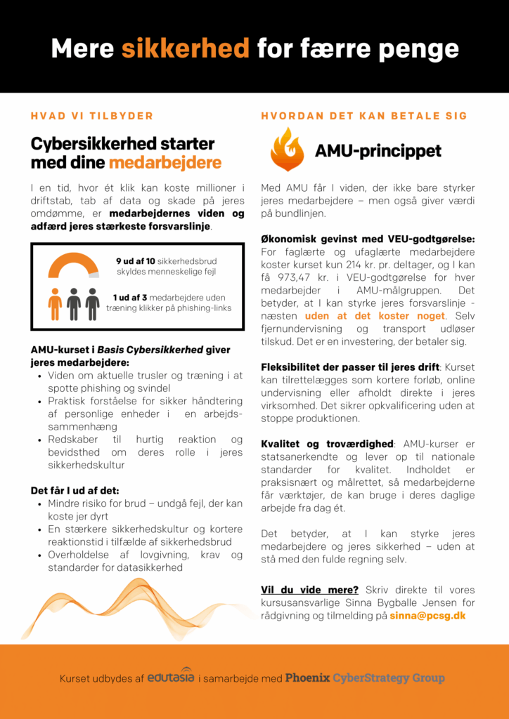 Tag med på sikkerhedskursus for administrative medarbejdere hos AMU og få mere sikkerhed for færre penge.